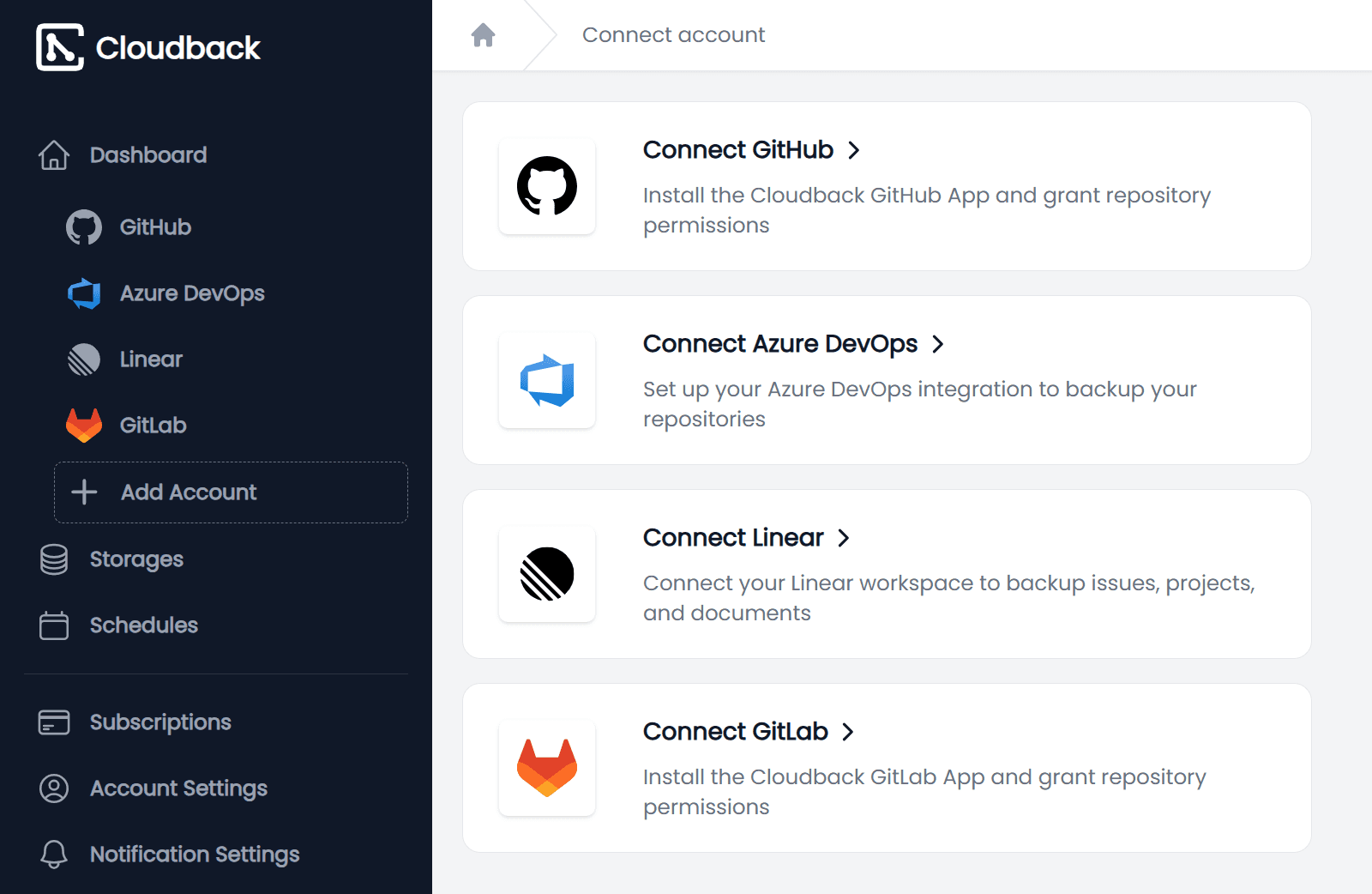 Cloudback will soon integrate with GitLab to back up your repository and metadata daily. Enjoy automatic backups and fast restores to secure your code, issues, and merge requests reliably.